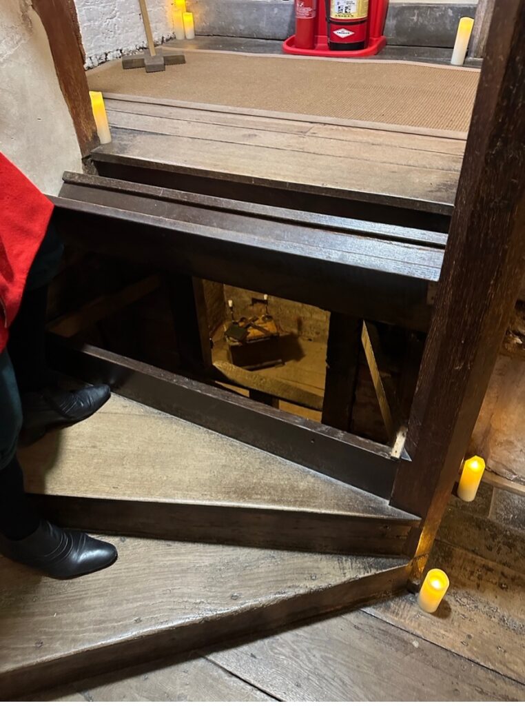 In 2022, when I first began researching for Winterset, specifically the priest holes where Kate hides from Oliver, I stumbled across an incredible house called Harvington Hall. This house boasts no less than seven priest hides—it’s possible future years may uncover more! For months I studied images of these priest hides, trying to understand what it might feel like to climb inside one; I wondered how it would smell, what the air might feel like, and the emotions that would fill me as I sat alone in the dark.